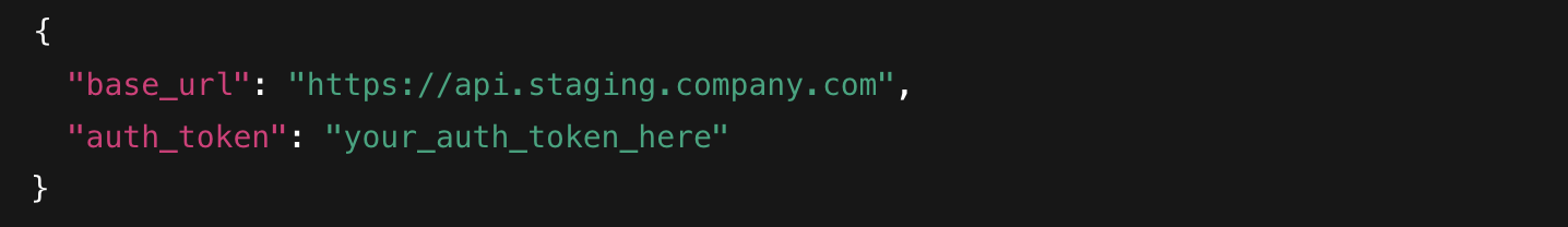 Staging: base_url is https://api.staging-env.com